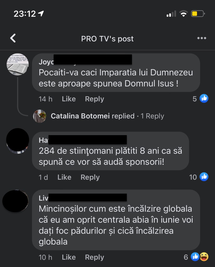 Ultimul comentariu are 6 reacții… Dacă erau toate de râs, înțelegeam, dar majoritatea au dat like.