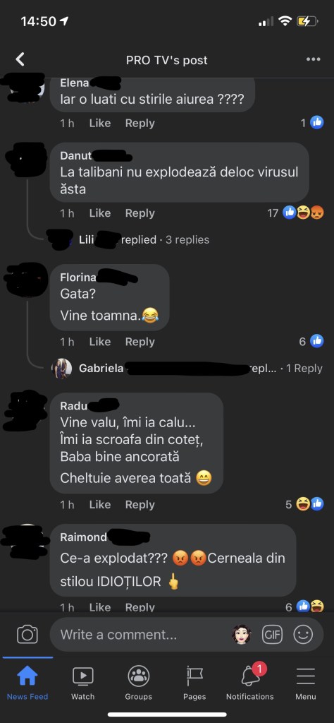 • Când mă plictisesc, citesc comentarii pe Facebook de la paginile de știri