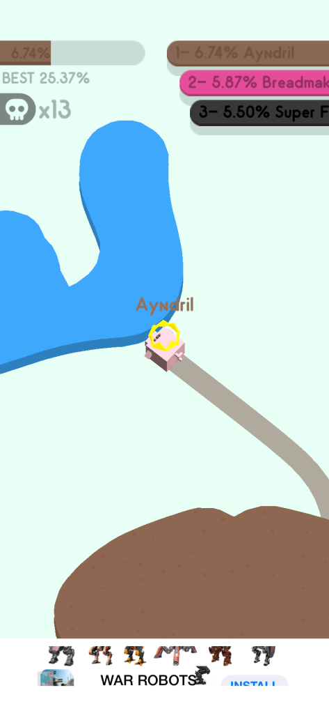 Un joc simplu, 2D, care nu necesită prea multă concentrare. Perfect pentru când ai ceva timp de pierdut. Tot scopul jocului este să cucerești cât mai mult din hartă fără să mori.